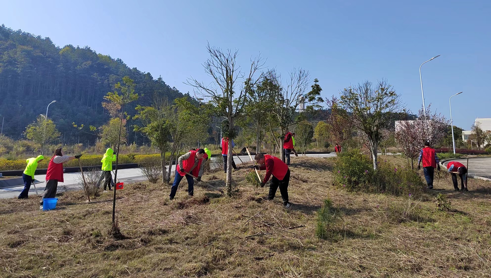活動(dòng)現(xiàn)場(chǎng),共建支部黨員伏下身子、擼起袖子,認(rèn)真投入到修剪樹木的熱潮中。有的拿起工具認(rèn)真修剪綠化植物,并將清理修剪下的樹枝清理至專用袋中;有的拿起掃把,打掃草叢里的枯枝落葉,堆放至事先準(zhǔn)備好的垃圾桶;有的帶上手套,揮舞鋤頭松動(dòng)土壤,撒上肥料增加養(yǎng)分;經(jīng)過(guò)大家的辛勤勞動(dòng),黨員綠地?zé)ㄈ灰恍拢尸F(xiàn)出規(guī)范有序、干凈整潔、環(huán)境優(yōu)美的新景象。