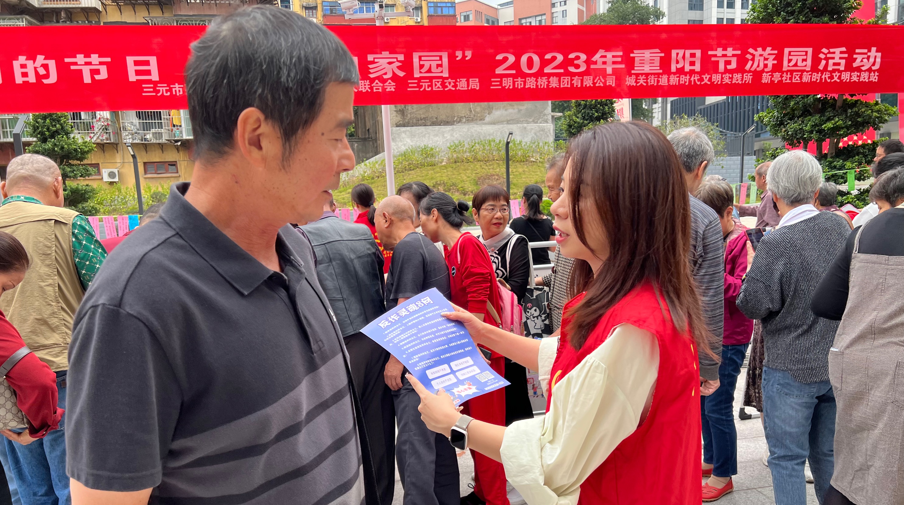 在游園現(xiàn)場,集團公司的志愿者們?yōu)槔先藗兎职l(fā)移風易俗、垃圾分類、防養(yǎng)老詐騙等方面的宣傳手冊,引導他們到義診點量血壓、測血糖、普及日常保健常識,并講解游園活動的具體內容和規(guī)則,同時在活動過程中,幫助老人們參加猜謎語、套圈圈、夾彈珠等簡單又富有趣味性的游戲活動,贏得老人們的一致贊譽。