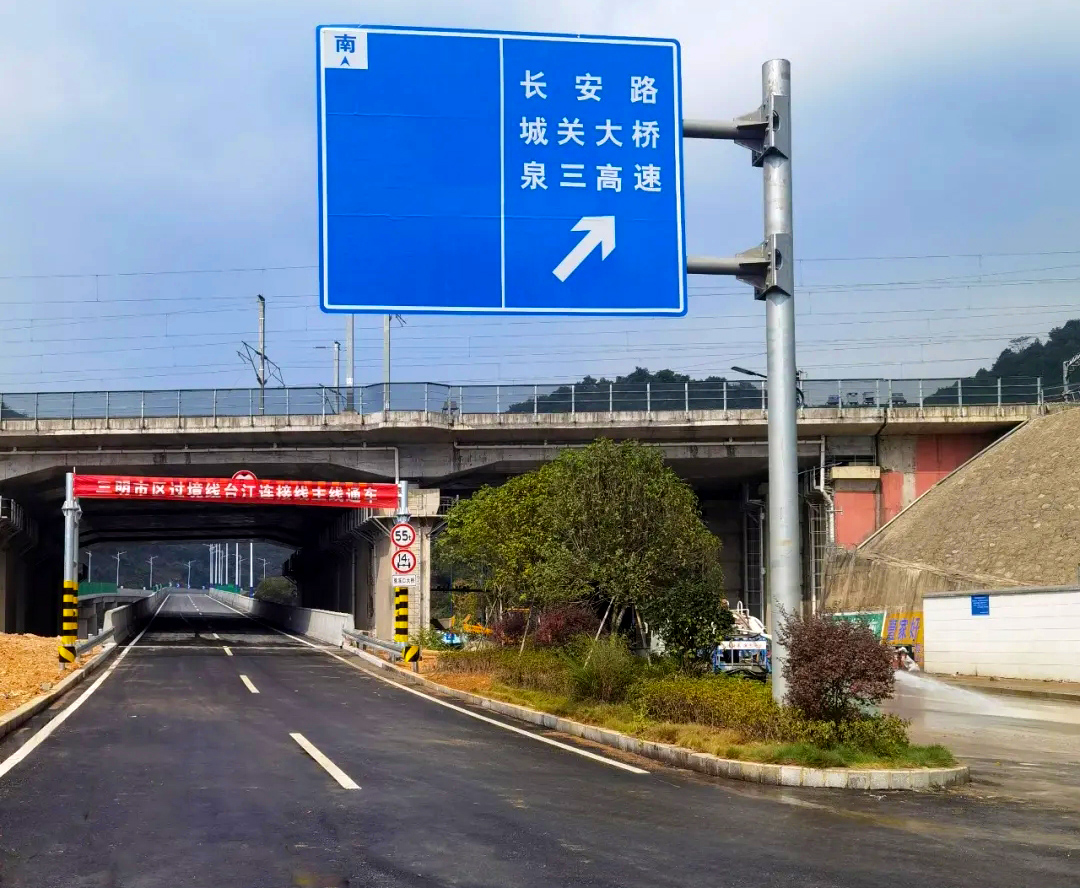 10月30日,國(guó)道G205線市區(qū)過境線至三明站連接線建成通車。該項(xiàng)目總投資2.6億元,線路全長(zhǎng)2.56公里,起于臺(tái)江大橋西側(cè)橋頭,下穿南三龍快速鐵路,上跨長(zhǎng)安路、鷹廈鐵路,終點(diǎn)與國(guó)道205線市區(qū)過境線相接,按城市主干道兼二級(jí)公路等級(jí)標(biāo)準(zhǔn)設(shè)計(jì),雙向四車道,設(shè)計(jì)時(shí)速60公里/小時(shí)。