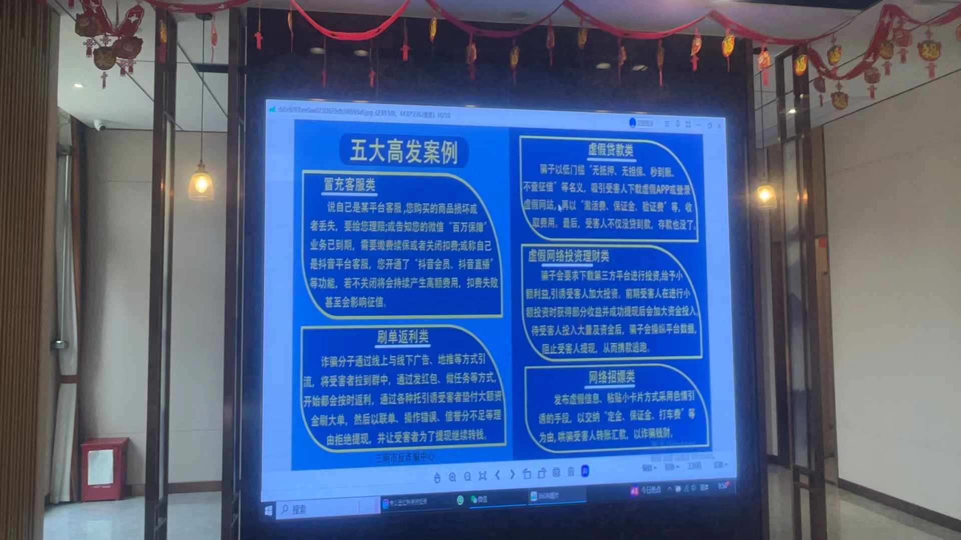 市路橋集團(tuán)通過線上線下多樣化宣傳反詐活動(dòng)。線上通過員工微信群,持續(xù)推送詐騙案例、作案手段等反詐知識鏈接,發(fā)動(dòng)員工積極轉(zhuǎn)發(fā)分享,擴(kuò)大宣傳覆蓋面;線下通過利用LED屏、擺放宣傳展板等方式在人員密集場所普及防范電信網(wǎng)絡(luò)詐騙的方法,持續(xù)不斷提高大家對電信詐騙的“心防”意識、“識詐”能力。