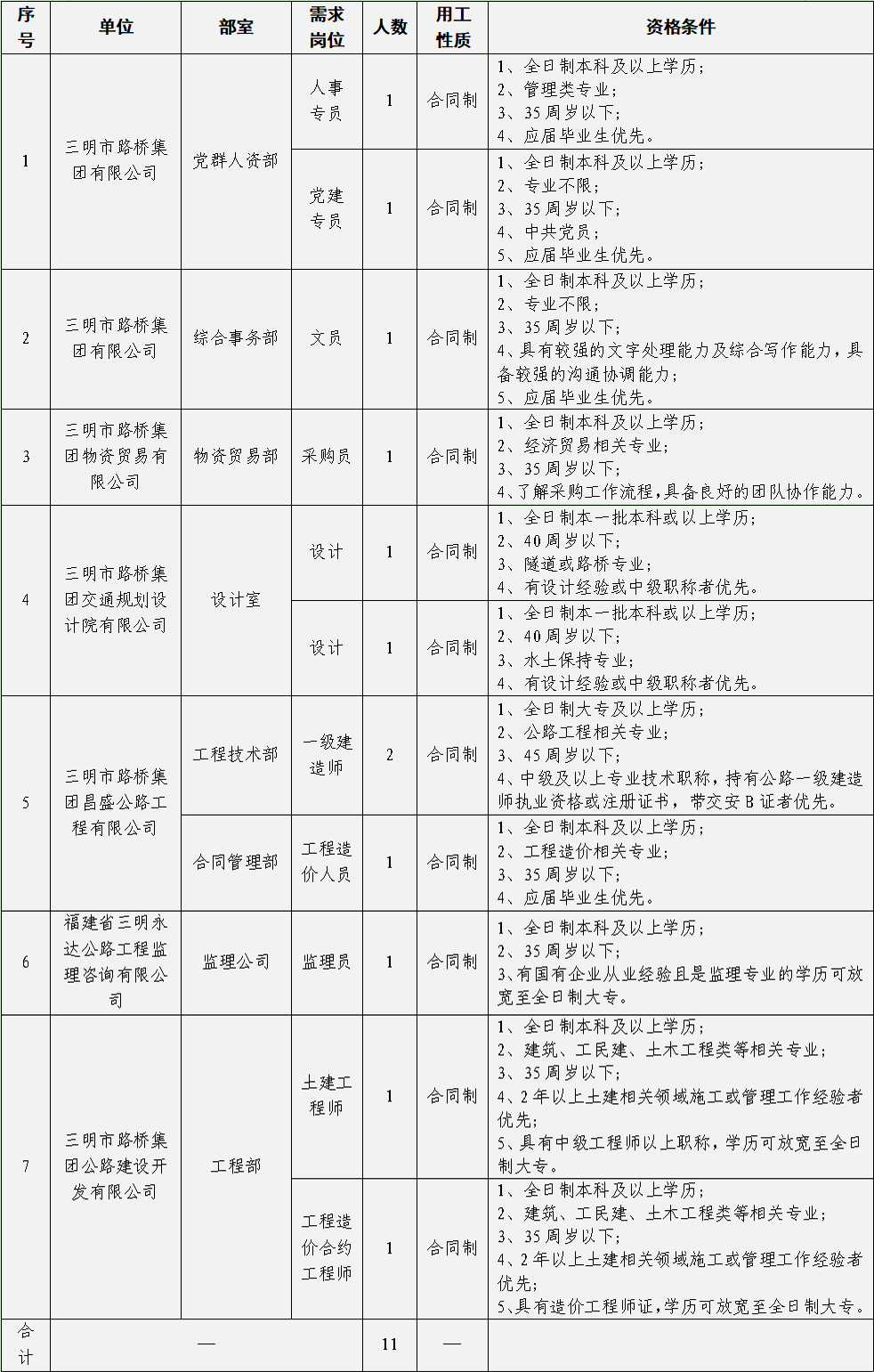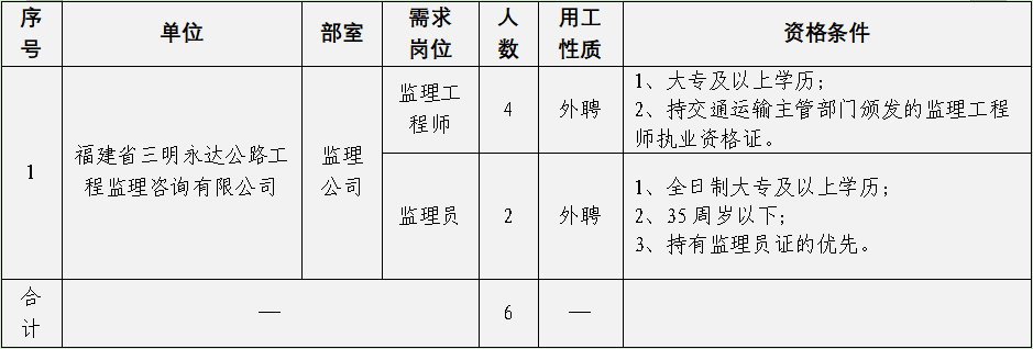 (二)報(bào)名。采取網(wǎng)絡(luò)報(bào)名方式,請應(yīng)聘者下載填寫《三明市路橋集團(tuán)有限公司公開招聘工作人員報(bào)名登記表》(附件),投遞至郵箱smslqjt@163.com(文件命名為“姓名+應(yīng)聘崗位”)。報(bào)名截止時(shí)間為2021年8月27日。