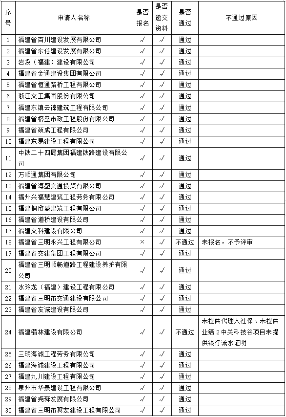 我司已對公路工程勞務隊伍信息庫進行了評審,現(xiàn)將評審結果進行公示,公示時間為2022年6月28日至6月30日。申請人若對資格評審結果有異議的,請在公示期內(nèi)以書面的形式向三明市路橋集團有限公司紀檢監(jiān)察部進行反饋。