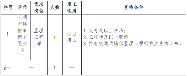 (一)公告。招聘崗位、人數(shù)、任職資格等信息在 “三明市路橋集團”官網(wǎng)(www.jhweili.com)向社會統(tǒng)一公告。