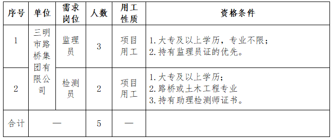 (一)公告。招聘崗位、人數(shù)、任職資格等信息在 “三明市路橋集團(tuán)”官網(wǎng)(www.jhweili.com)向社會統(tǒng)一公告。