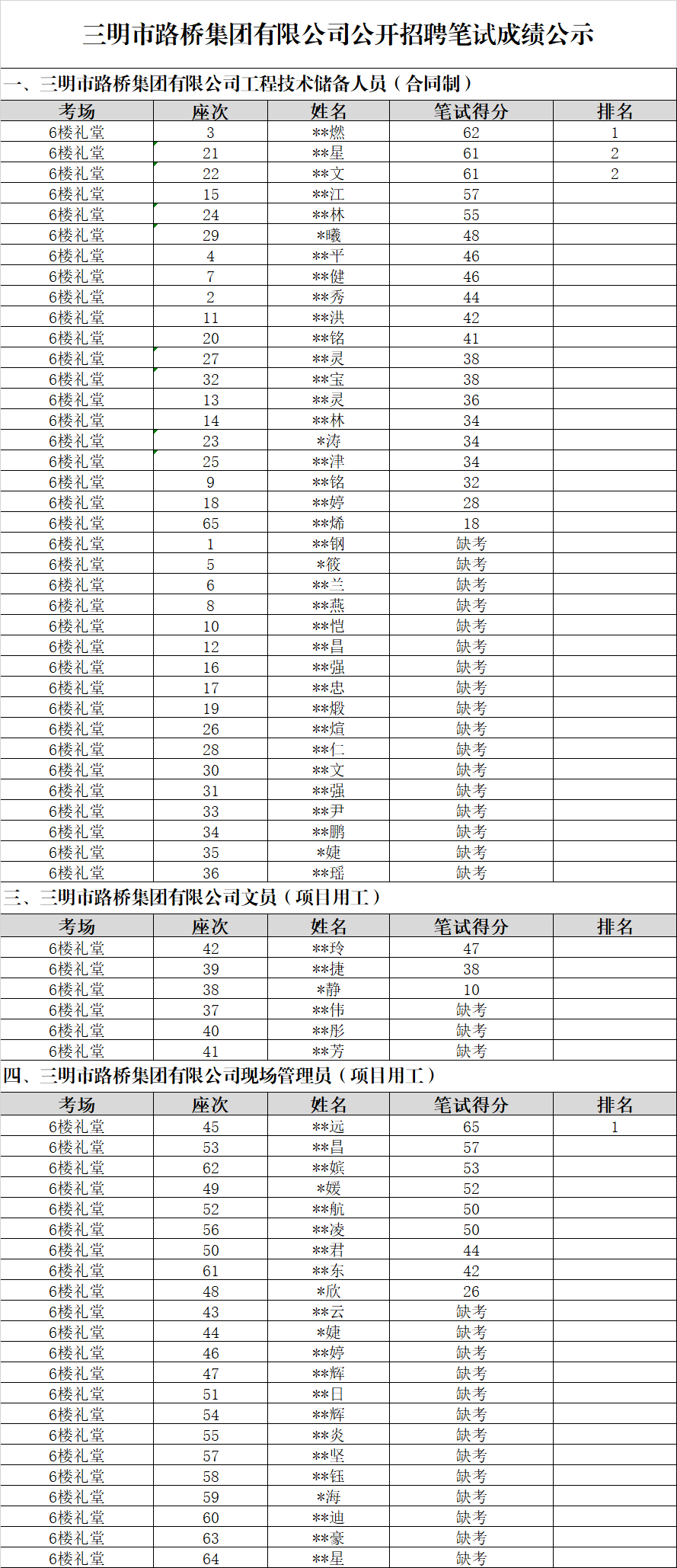 市路橋集團(tuán)公開招聘筆試環(huán)節(jié)已于2023年8月10日完成,現(xiàn)將筆試成績(jī)予以公示: