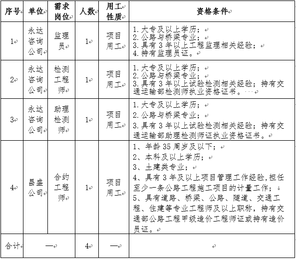 因工作需要,按照公開、公平、公正、競爭擇優(yōu)的原則,面向社會公開招聘人員4人,現(xiàn)將崗位招聘信息發(fā)布如下: