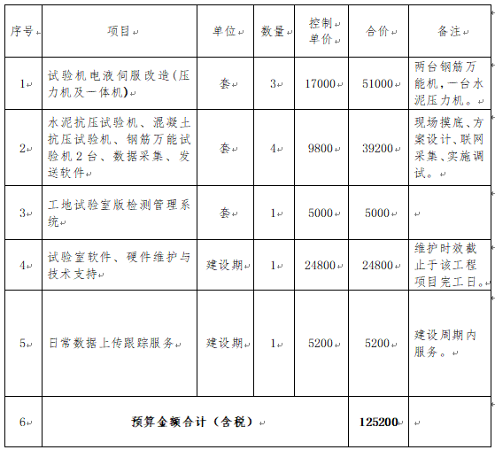 根據(jù)高速公路標準化建設(shè)要求,工地試驗室需實時上傳試驗檢測數(shù)據(jù),供應(yīng)商需提供數(shù)據(jù)采集軟件系統(tǒng)及接入等信息化技術(shù)服務(wù)。采購項目服務(wù)內(nèi)容及預算費用明細如下表: