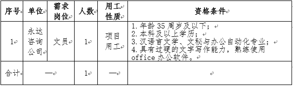 因工作需要,按照公開(kāi)、公平、公正、競(jìng)爭(zhēng)擇優(yōu)的原則,面向社會(huì)公開(kāi)招聘項(xiàng)目用工人員1人,現(xiàn)將崗位招聘信息發(fā)布如下: